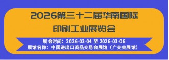 | 2026第三十二届华南国际印刷工业展览会 | 2026-03-04~2026-03-06 | 广州 | 距离开幕95天 |