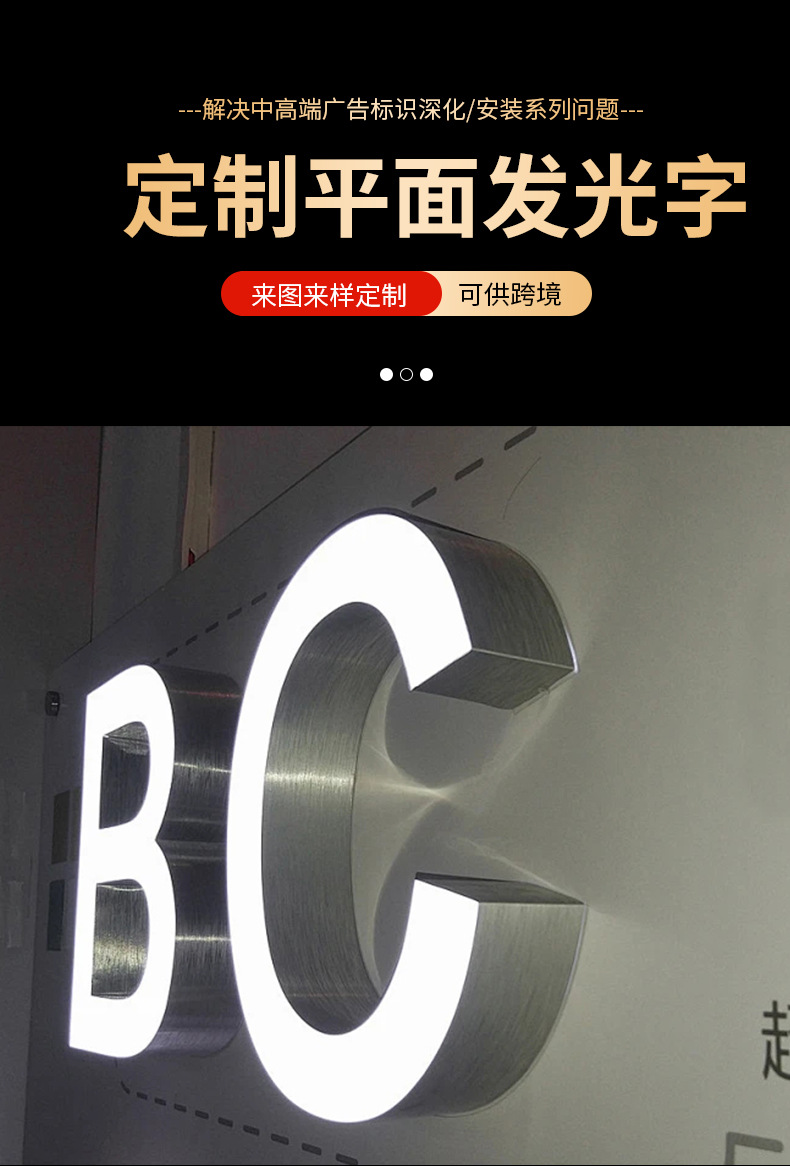 招牌广告牌门头发光字不锈钢平面led发光牌霓虹灯广告字无边广告