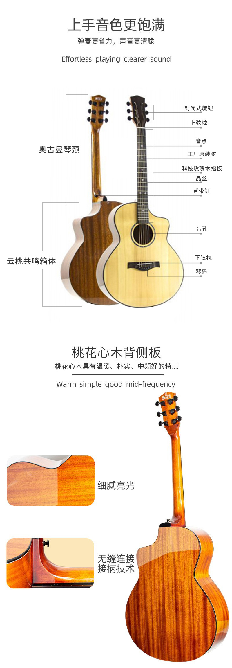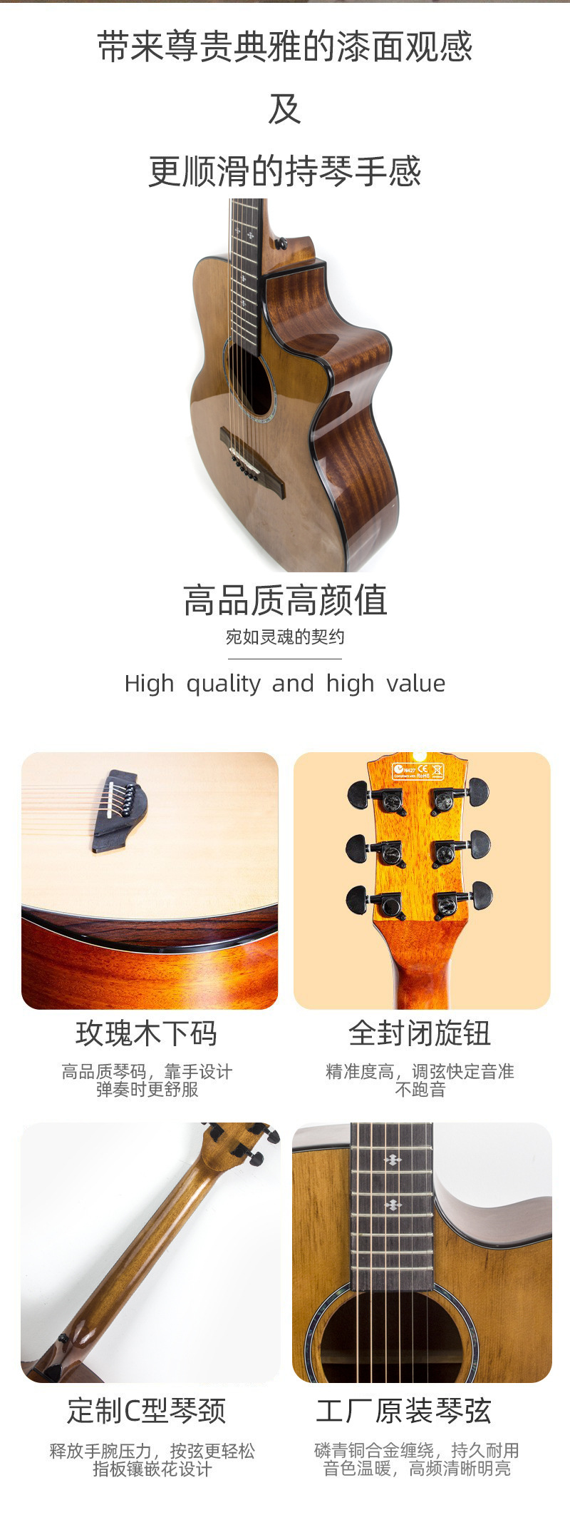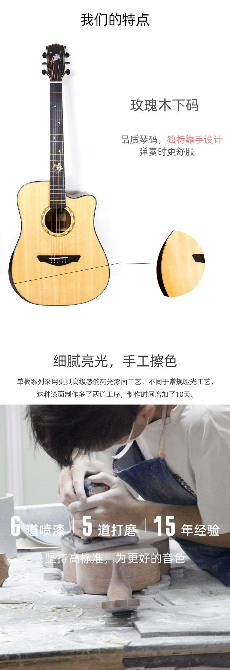单板吉他41寸亮光靠手民谣木吉他批发36寸儿童面单实木guitar琴