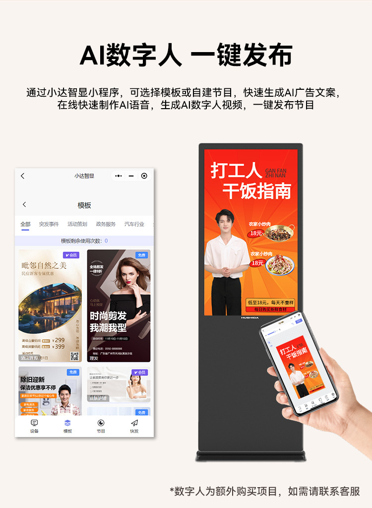 互视达立式广告机AI数字人商场宣传显示屏落地式触摸控一体机定制