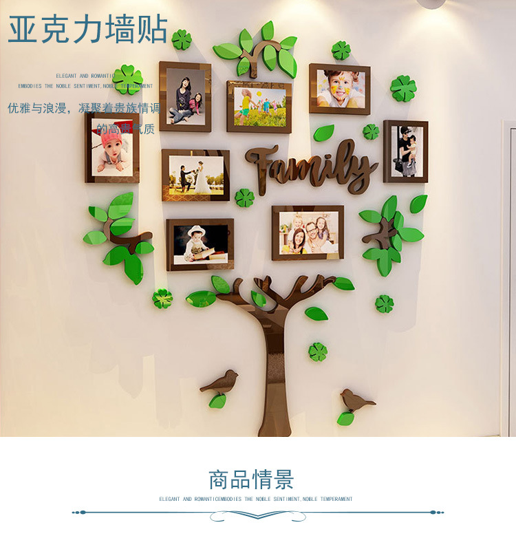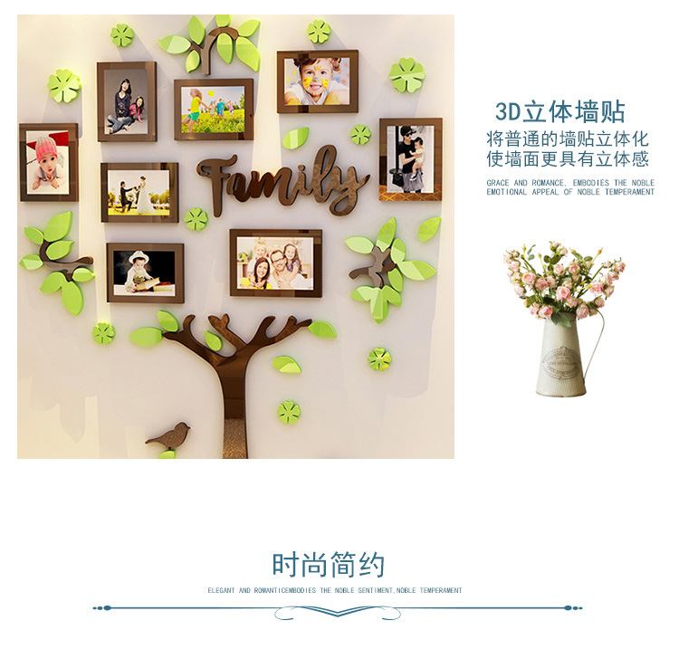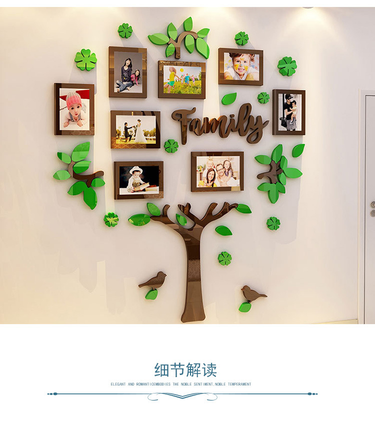 家庭成长树照片墙面装饰儿童房间卧室布置创意个性3d立体墙壁贴画