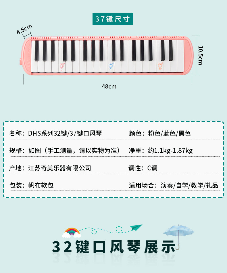 奇美口风琴DHS官方正品32键37键学生演奏吹管乐器批发儿童口风琴