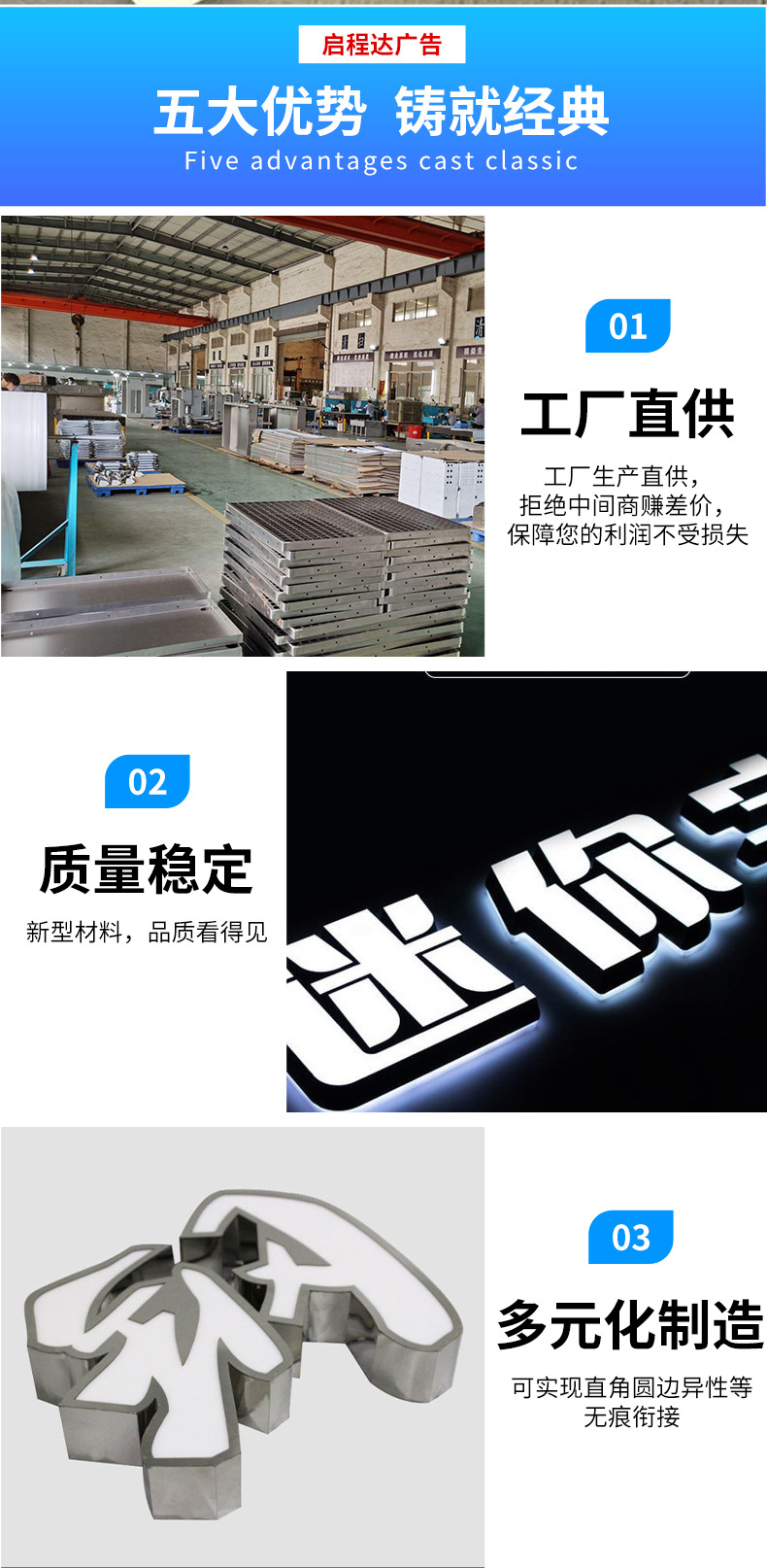门头字广告牌招牌发光字亚克力PVC水晶立体字制作商铺宣传背景板