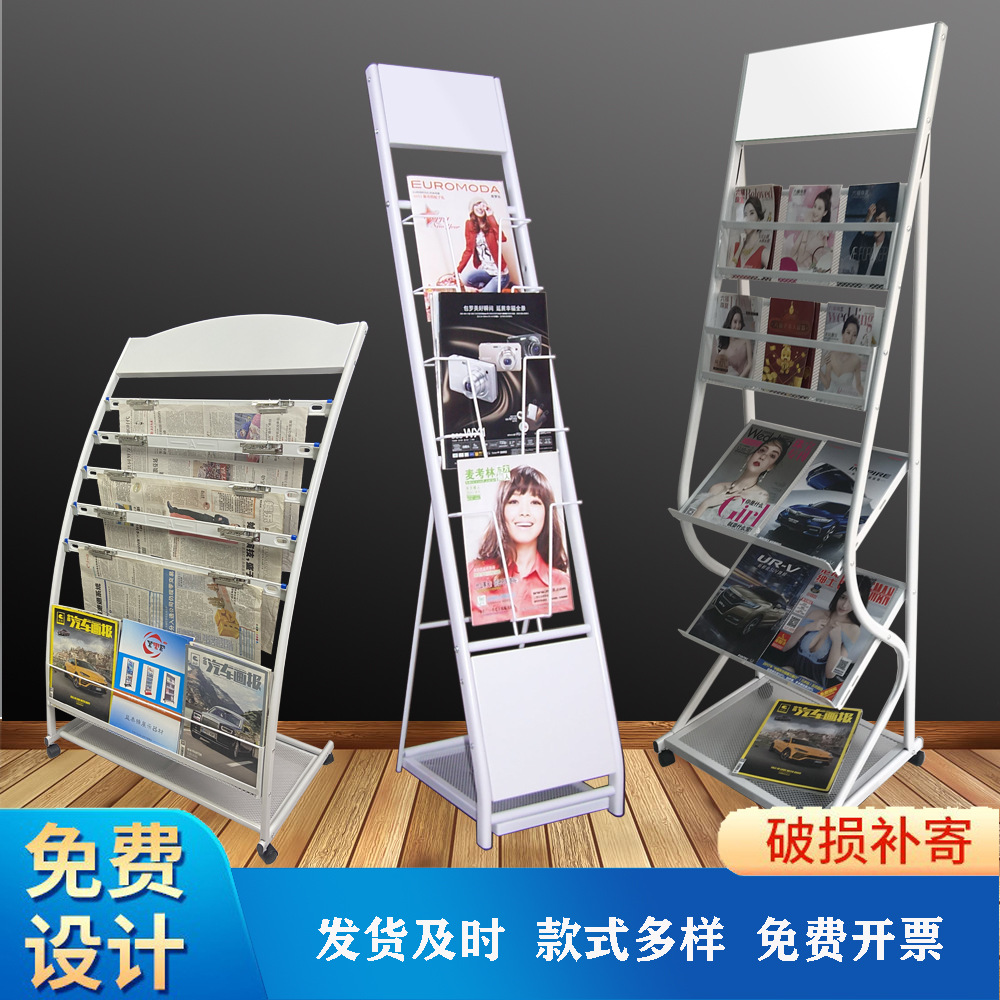 金属报刊杂志架书报架 立式铁艺报刊展示架报纸架 宣传资料展示架