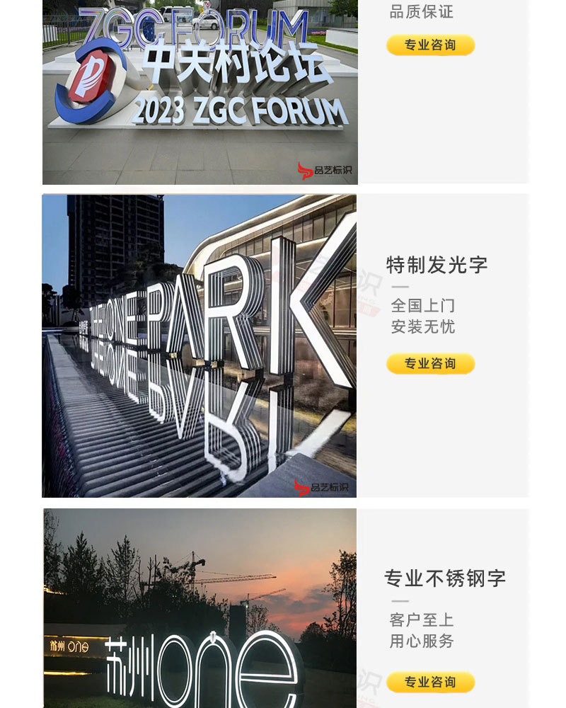 立体不锈钢字广告发光字亚克力金属字广告字安装户外招牌吊装公司