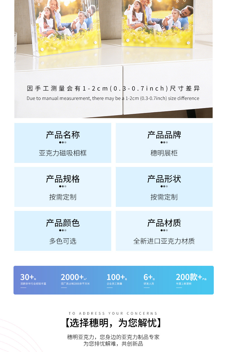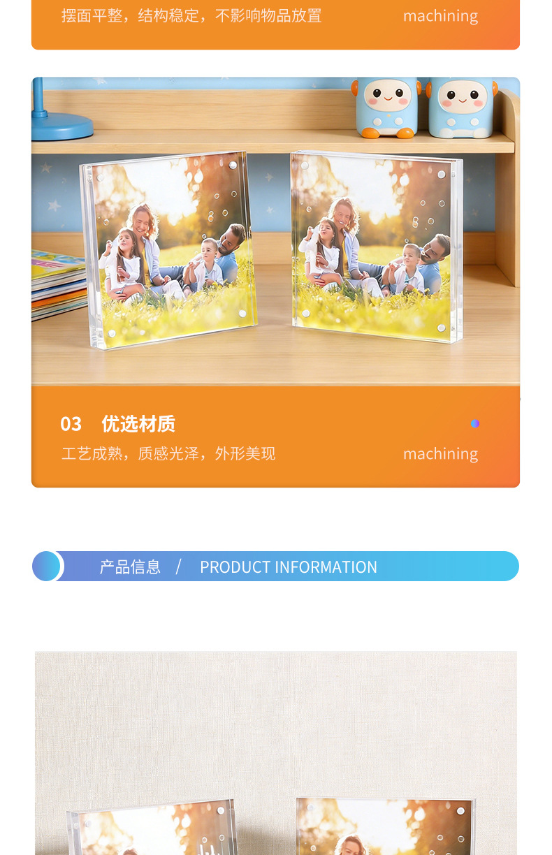 亚克力磁吸相框方形双面透明无框方形画框桌面摆台长方形厂家定制