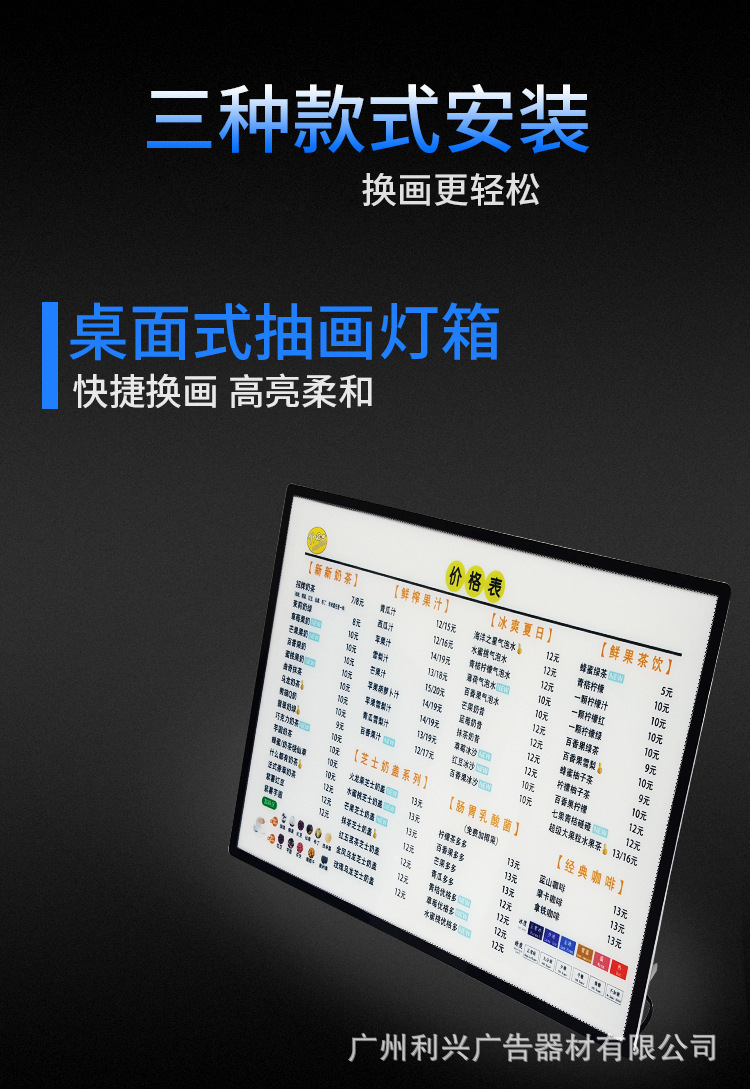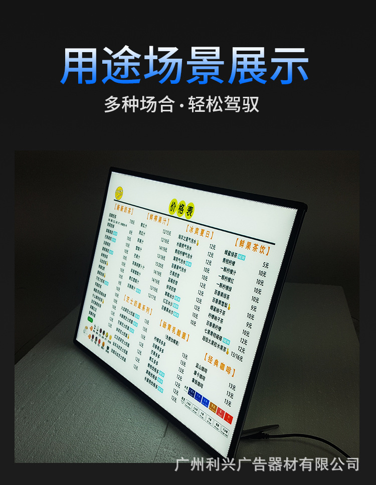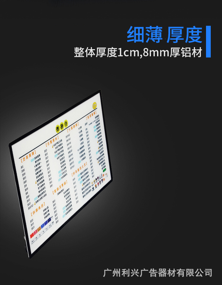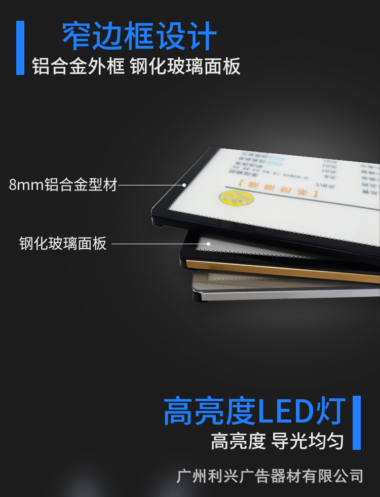 led超薄灯箱价目表广告牌发光展示牌铝合金钢化玻璃抽画灯 箱定制