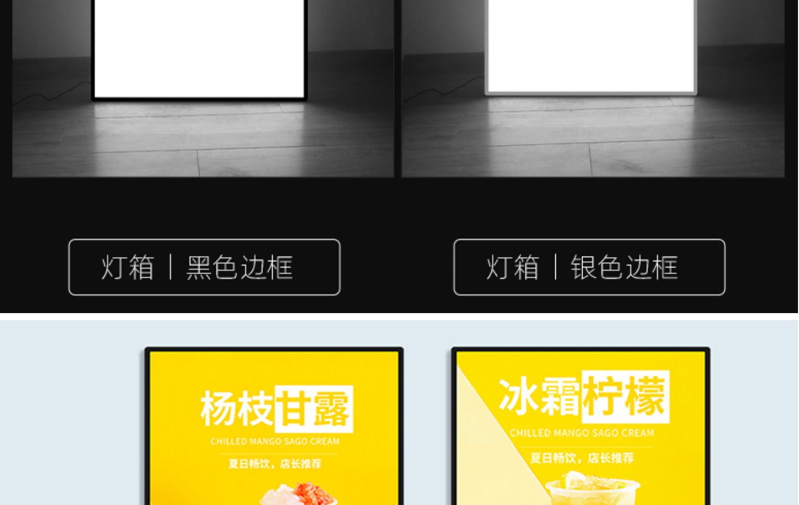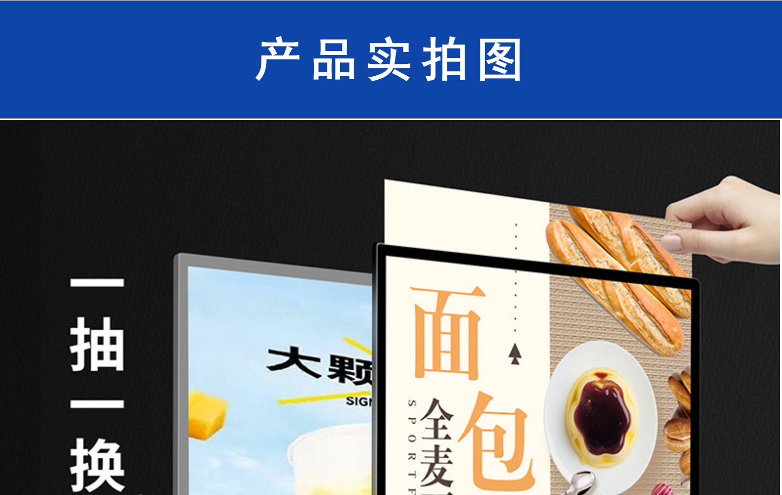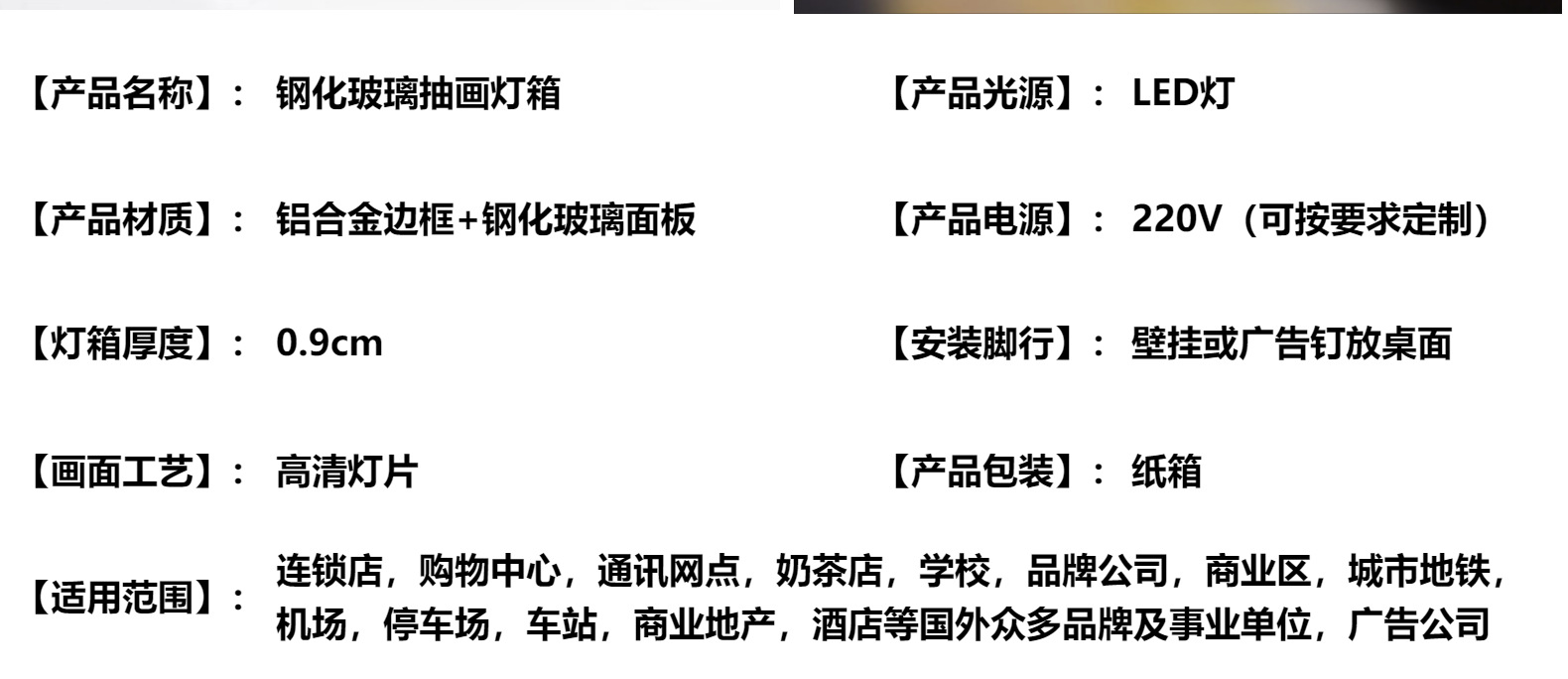 钢化玻璃抽画灯箱定制超薄发光广告牌铝合金海报框挂墙电梯展示架