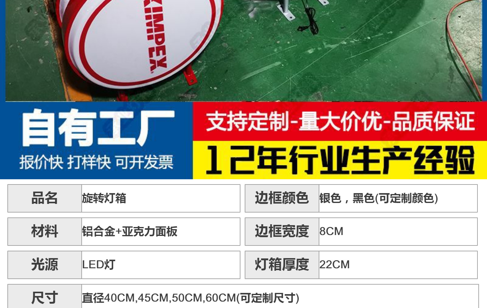 360度旋转灯箱厂家批发单头挂墙式双面吸塑侧招铁艺亚克 力广告牌