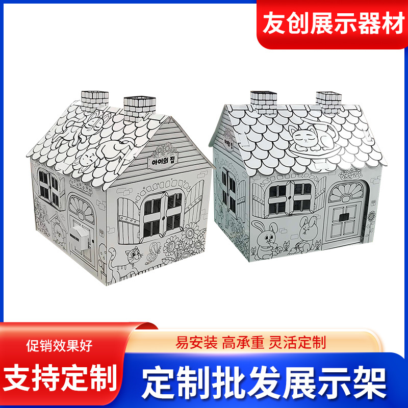 儿童涂鸦纸架城堡纸壳板模型涂鸦儿童展示纸房子纸货架批发