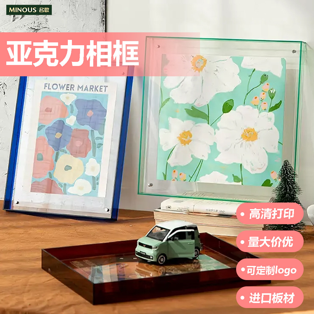 亚克力画框挂墙式摆台悬浮双面创意轻奢裱框半透彩色亚克 力相框