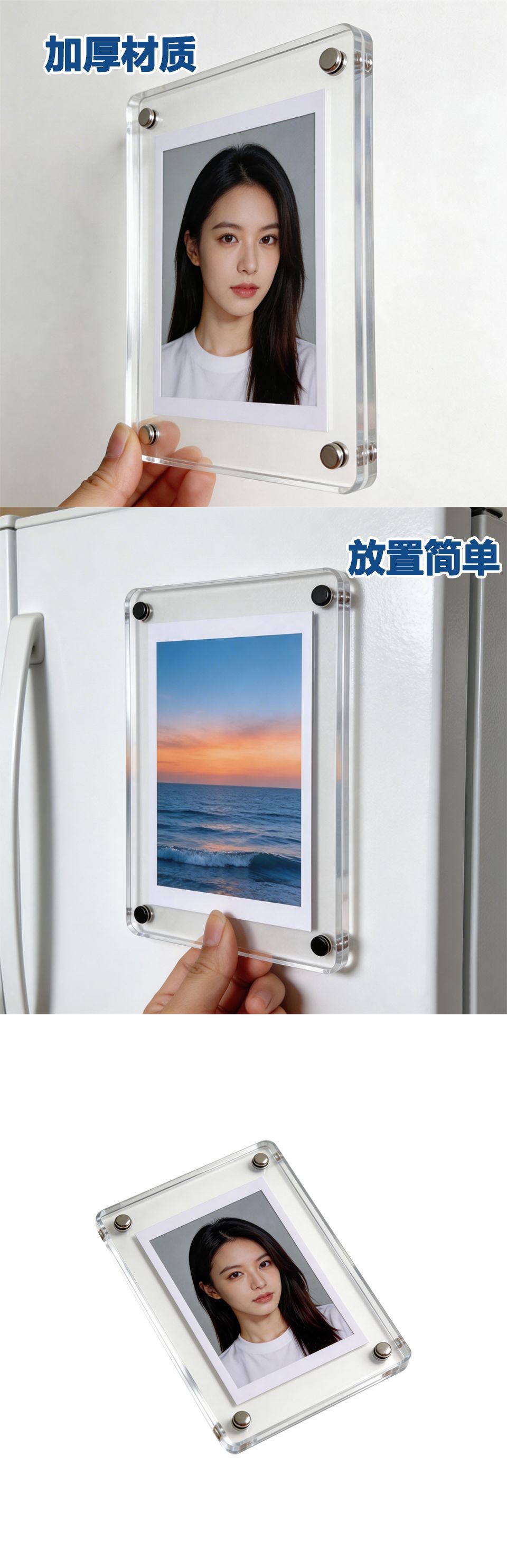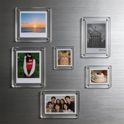 亚克力磁吸相框冰箱贴1寸强磁相框卡砖高清双面拍立得胶 片展示框
