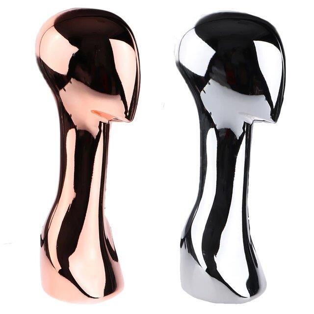 现货长脖子玫瑰金头模电镀模特头帽子展示架假发模特头帽托银色头