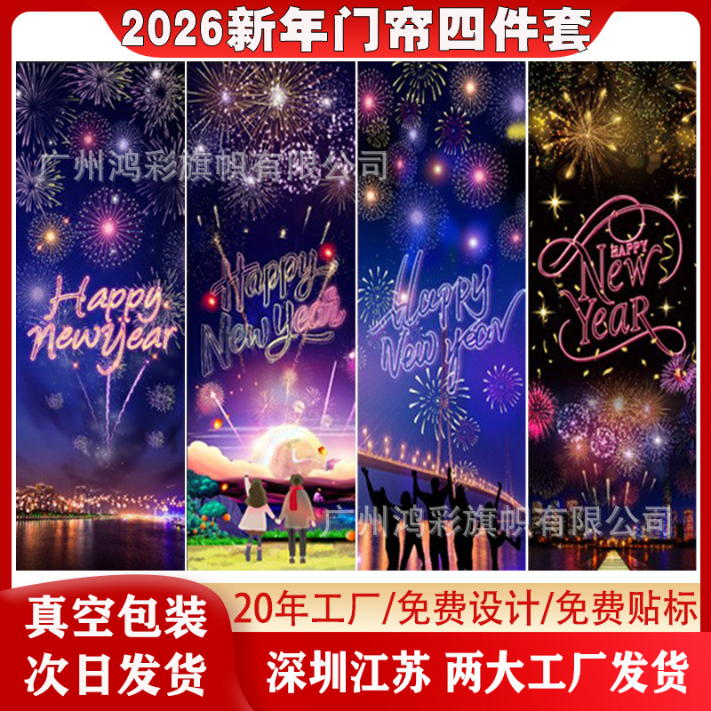 2026新年快乐背景布四件套横幅烟花城市场景节日派对氛围拍照装饰