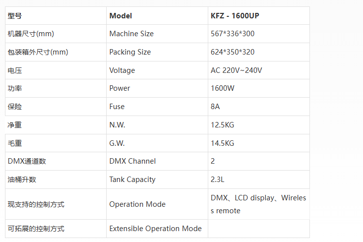 传送烟雾是它的使命,您想致其何处,它都会利用无尽的风能将均匀细腻的烟雾送至,传送距离的权利将由您驾驭,无论您想由远及近,由近及远,KFZ-1600UP传送者随时候命!覆盖空间超乎您想象。国际标准DMX-512信号,LCD液晶面板操控,可定时定量,可调烟雾及风力输出大小,更可通过简易遥控方式操控。