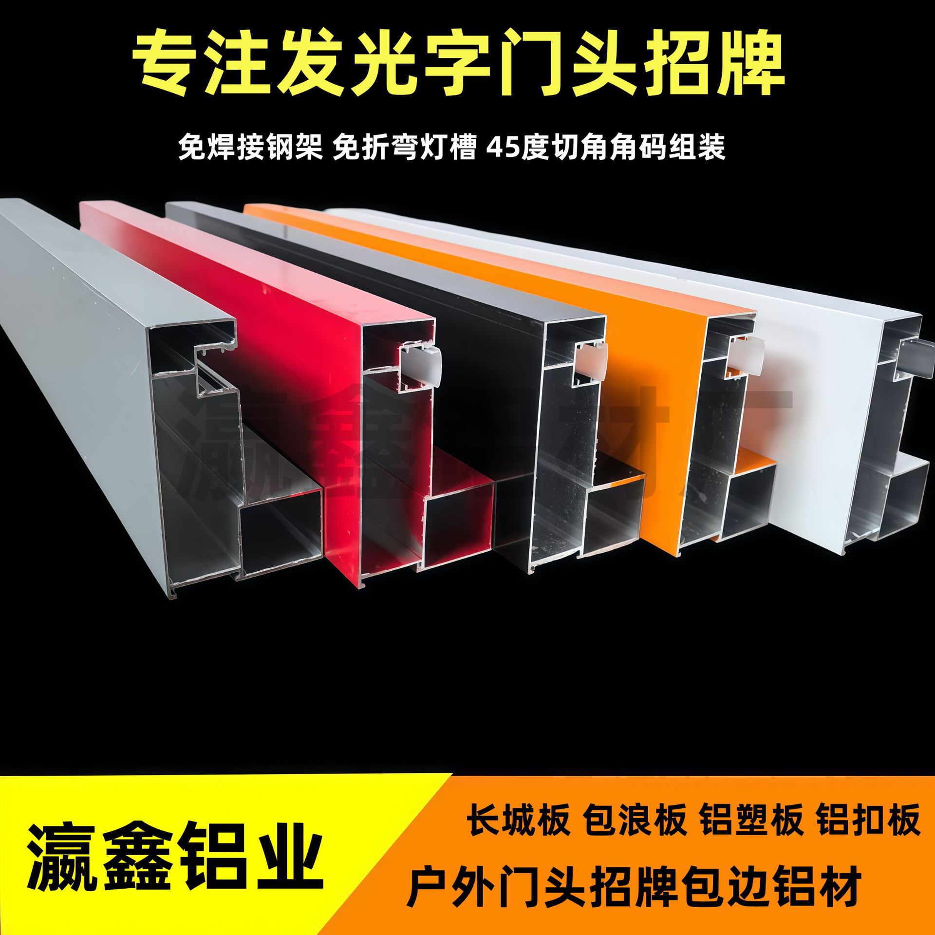 吸金长城板波浪板铝扣板铝塑板发光字门头包边型材招牌边框批发