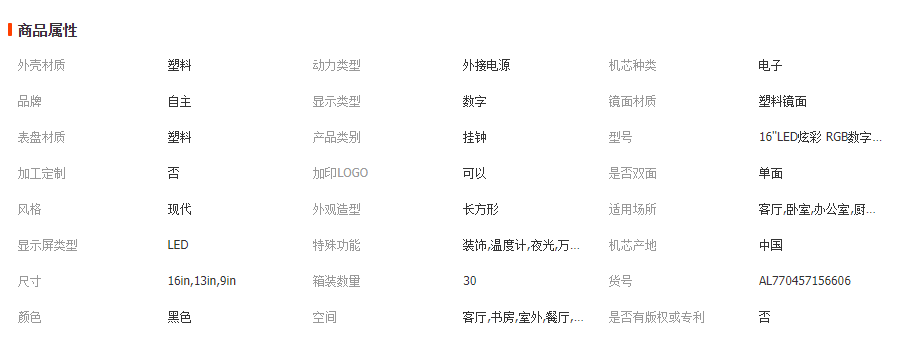 跨境新品爆款16寸LED幻彩挂钟RGB背发光多功能闹钟大尺寸数字挂钟