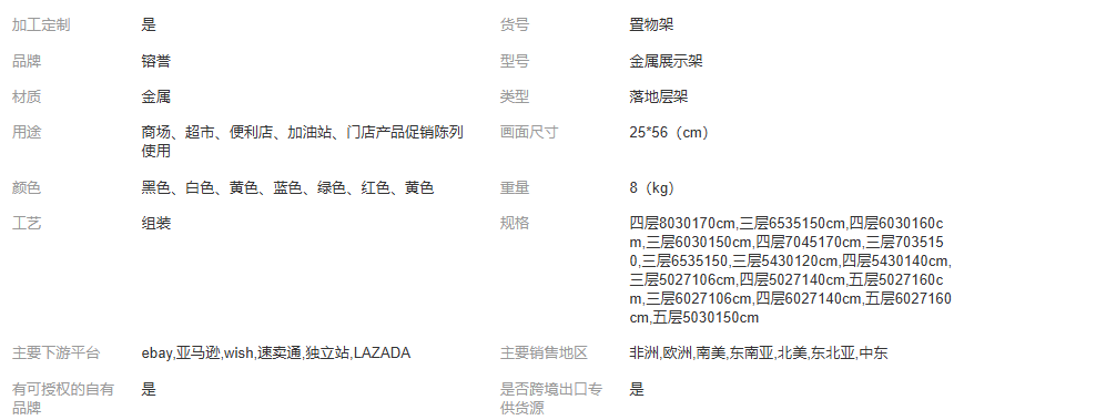 主营: 仓储货架 其他仓储设备 展示架