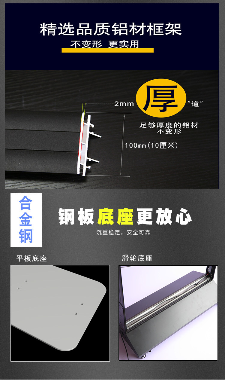 立式双面卡布灯箱商场饭店招牌双面发光广告牌户外落地移动灯箱