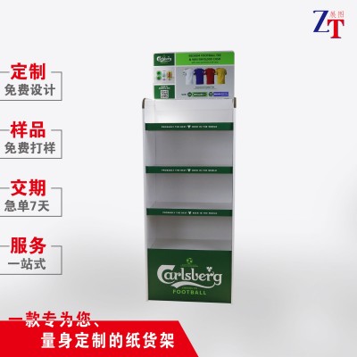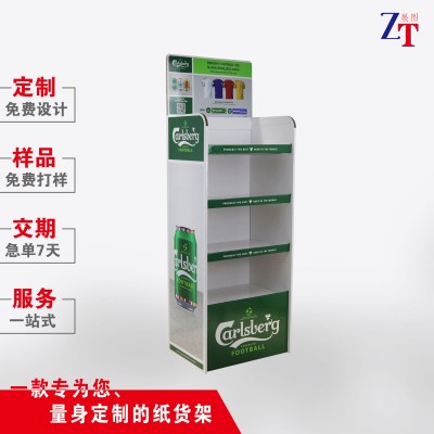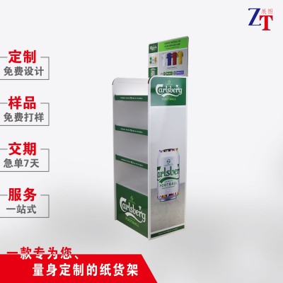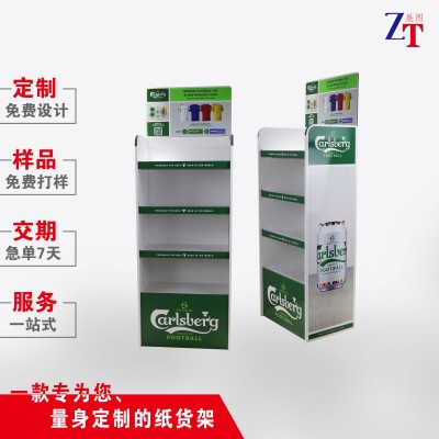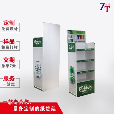 超市啤酒纸货架落地酒水展示架促销饮料定制瓦楞纸可折叠