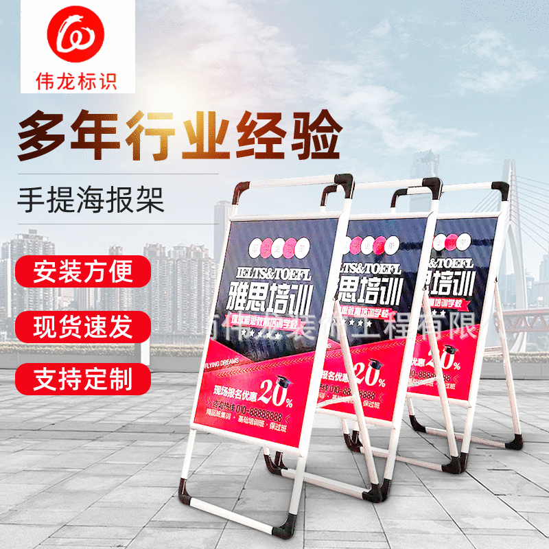铝合金手提海报架折叠式kt板宣传展架单面展示户外广告展板架