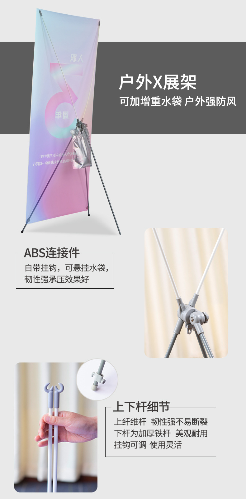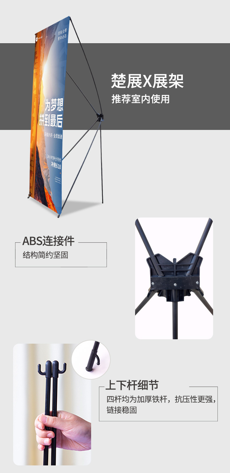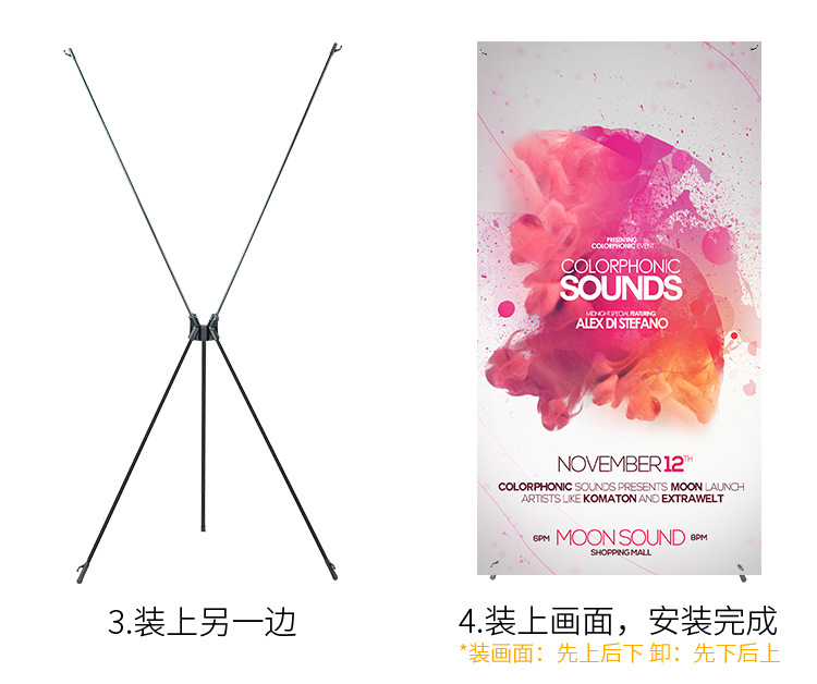 韩式X展架80x180便携广告海报易拉宝展示架立式防风伸缩门型架子