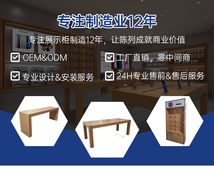 苹果手机展示桌木纹烤漆展厅展柜数码中岛体验台厂家直销