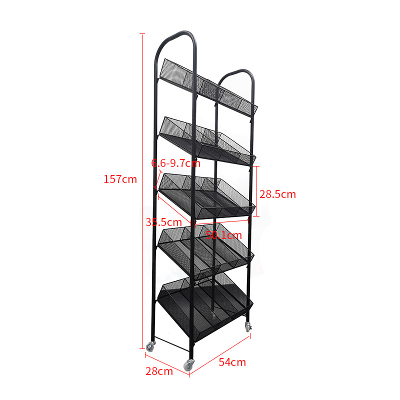 超市货架斜带轮手推车面膜化妆品便利店陈列展示架多层小 落地式