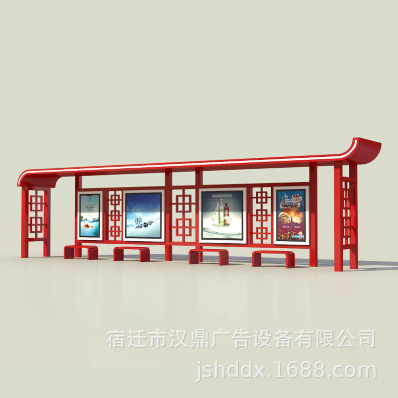 新款智能公交电子站台站牌不锈钢巴士广告滚动灯箱仿古厂家候车亭