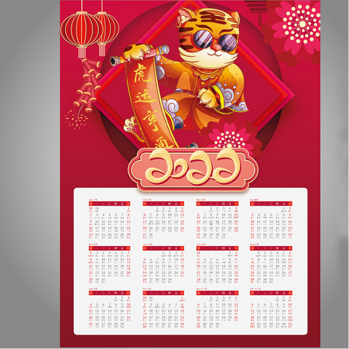 厂家直销2022虎年广告单张年画订做广告年历挂历定制印logo