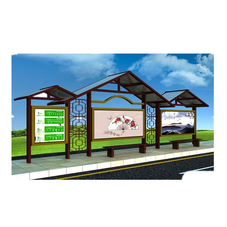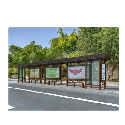 厂家批发复古户外智能候车亭灯箱创新仿古公交车站台广告候车亭