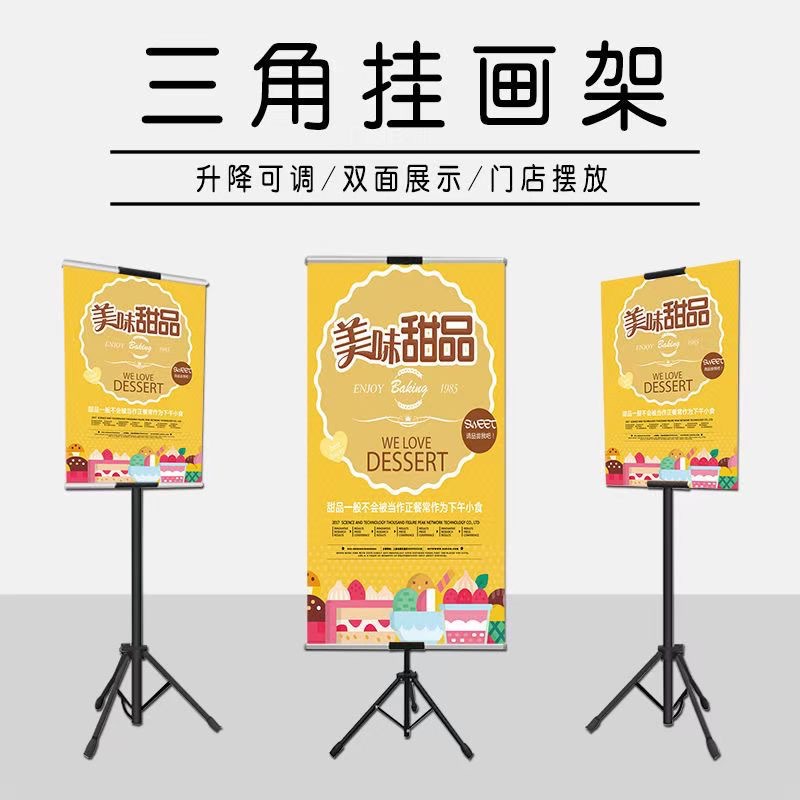 落地KT板展架POP海报架广告立式升降架子铁质双面三角 挂画架