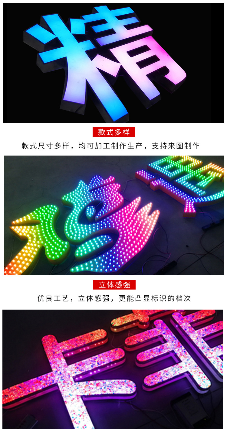 户外幻彩发光字招牌门头3D幻彩深渊发光广告牌led七彩动态广告字