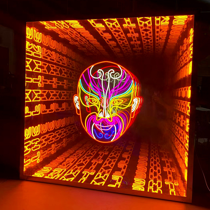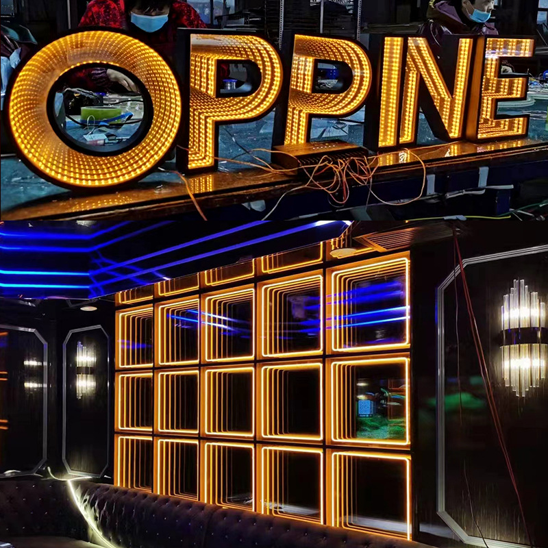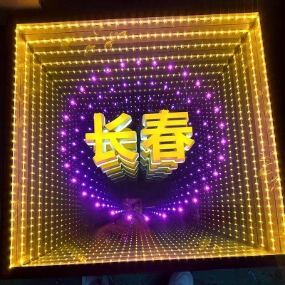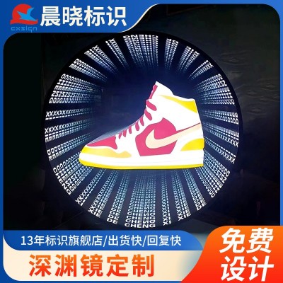 2024新款亚克力深渊千层镜商场酒吧网红背景墙制作无限 延伸发光字