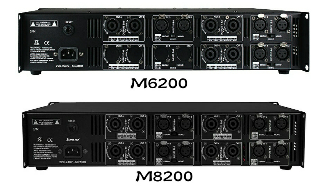 M系列数字功率放大器采用Class D拓扑结构并集成开关电源,超轻巧机身,强大功率输出。M6200和M8200分别采用六通道和八通道的设计,2U机身设计,具有专业的保护功能和先进的散热系统,前面板面有精确的控制旋钮,LED指示灯可显示系统的动行状态,后面板采用平衡的XLR输入和SPEAKON输出,并带有模式转换开关,可以切换不同的工作模式。轻巧的机器以及强大的功率输出非常易于产品运输和更多领域的应用。