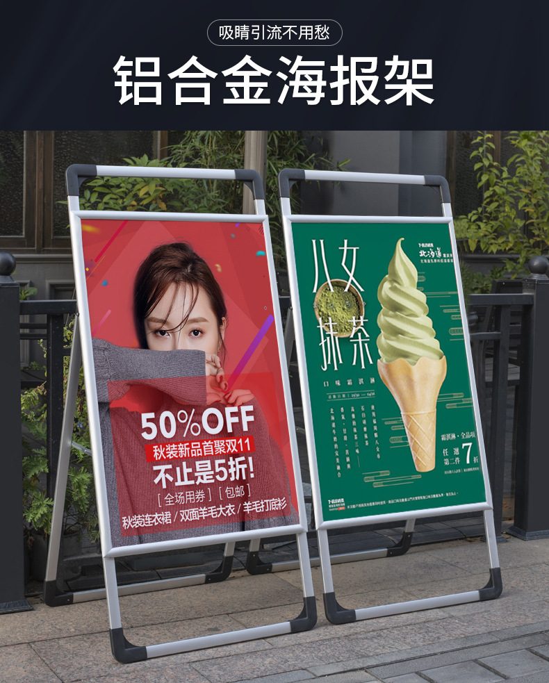 户外铝合金海报架手提海报架落地式立牌展架广告牌招聘宣传展示架
