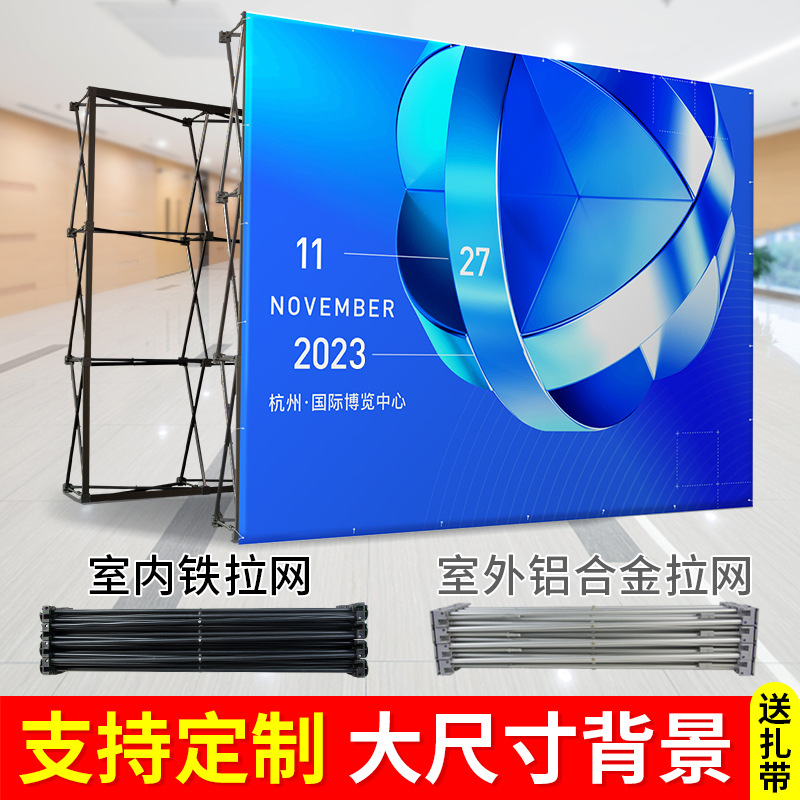 铁质拉网展架年会折叠背景墙广告活动签到墙 便携展示架厂家批发