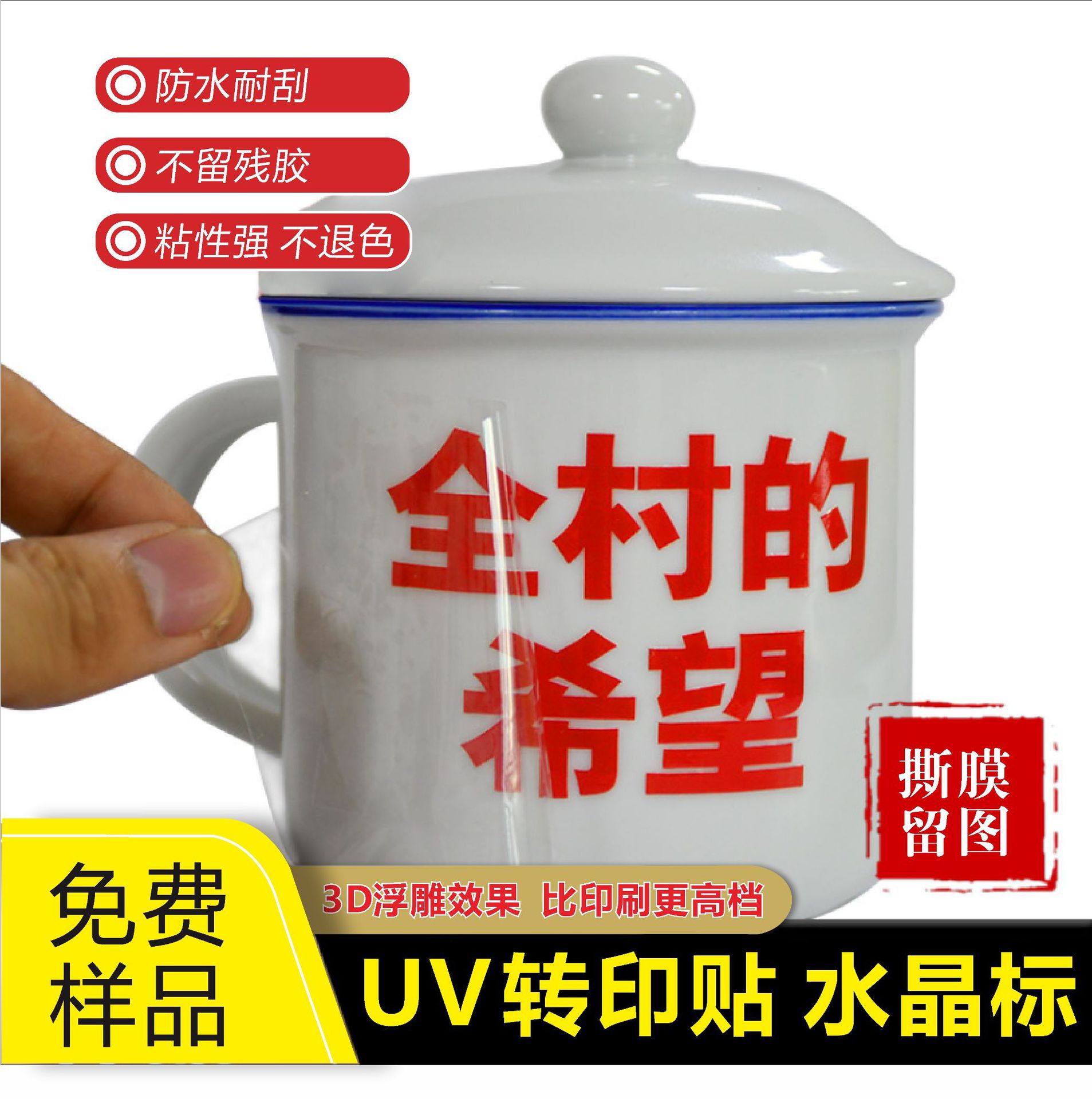 水晶标uv转印贴立体感撕膜留字logo烫金冷转印贴纸杯贴 标签定制