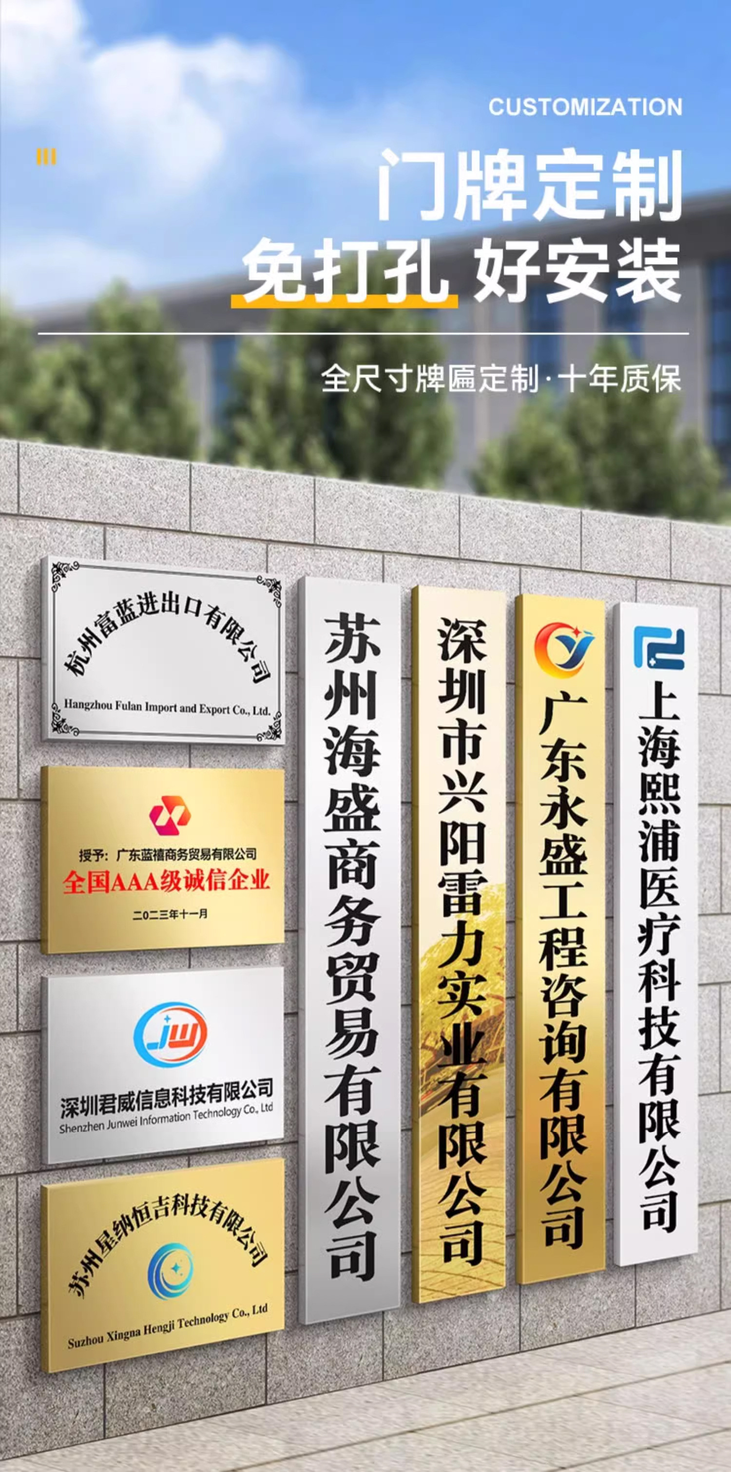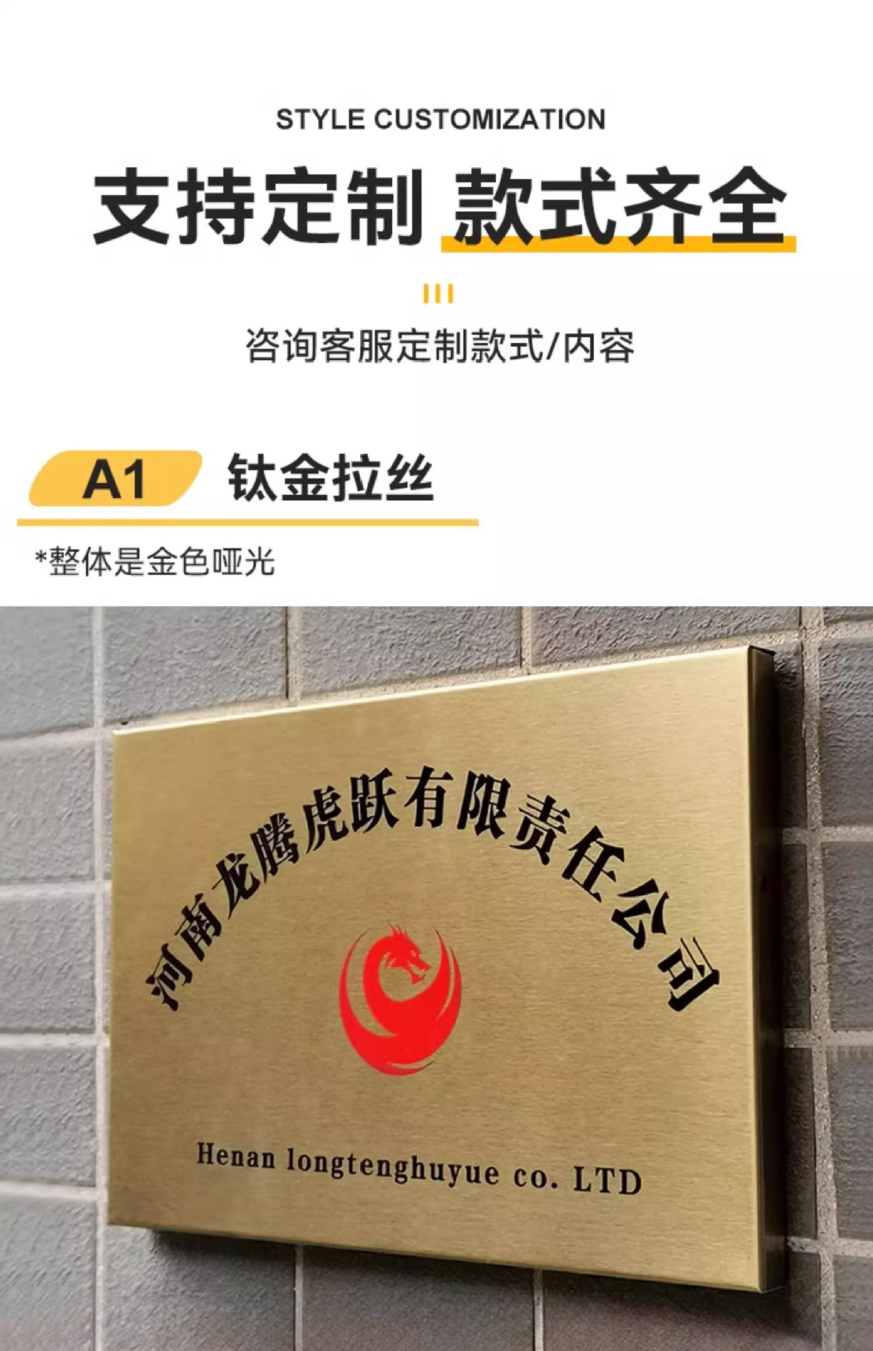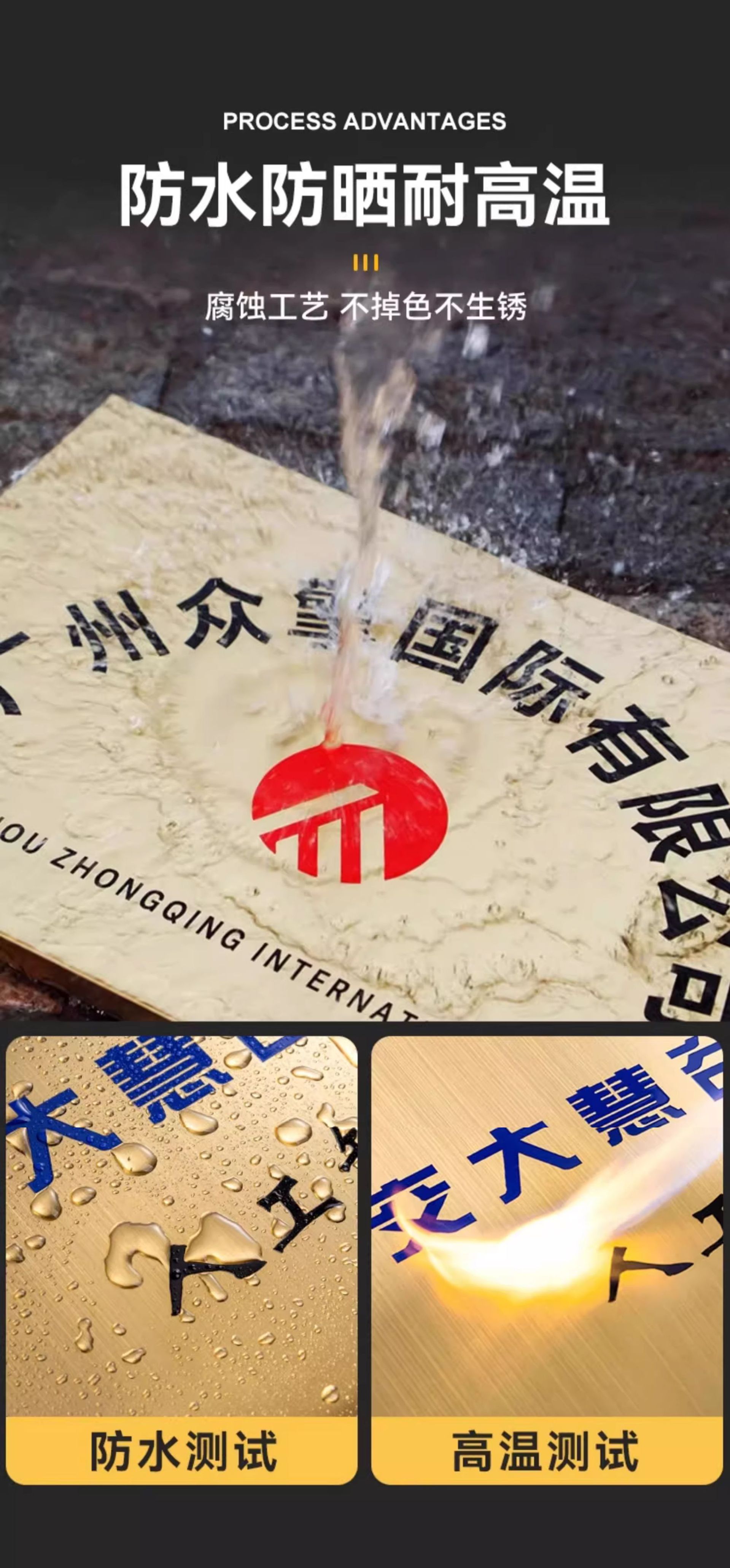 公司门牌不锈钢牌匾金属户外门头广告牌制作授权奖牌钛金腐蚀铜牌