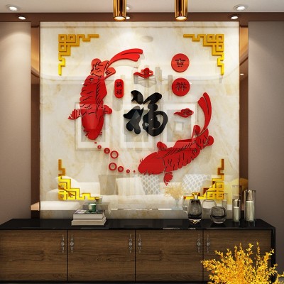 吉祥如意福字鱼亚克力3d立体墙贴玄关客厅餐厅墙壁贴纸新年贴纸画