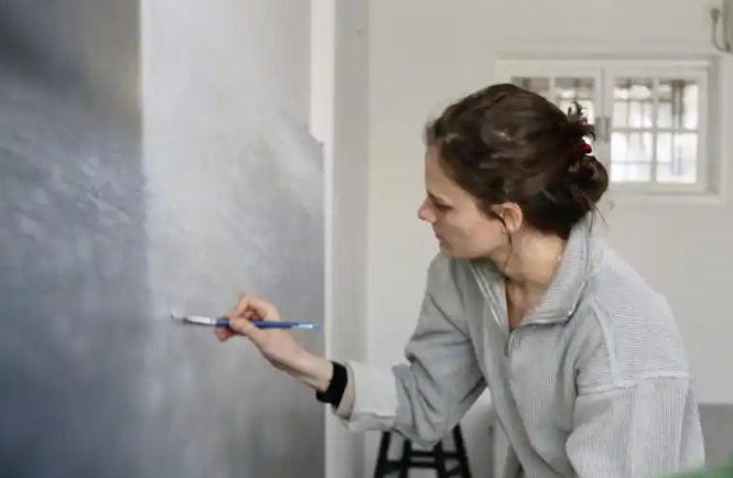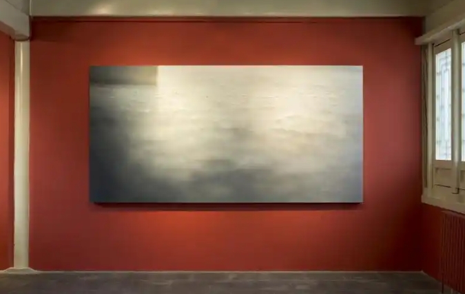 展览现场,三米长的大尺幅布面油画《方庭之窗1》尤为吸引眼球,在画面左上角,一堵墙终止于此,光线随之洒落在地面之上。14幅《方庭之窗》系列绘画当中,白然融入了她在北京漫步时走过的路面:通往景山公园山顶的台阶、故宫里数百万游客踏过的石头,以及她居住的胡同入口的地面。