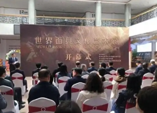 4月17日,“世界面具文化艺术展”开幕式在潍坊市博物馆主展馆一楼大厅举行。该展览设在潍坊市博物馆及十笏园分馆,将持续至5月16日。