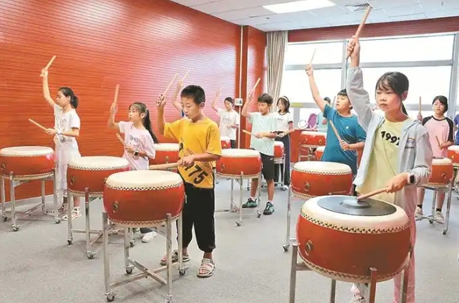 与往年不同,本次培训在保留音乐、书法等经典课程基础上,增加儿童戏剧表演、大鼓演奏等特色课程,使得艺术门类更加多元。教学方式也突破传统,多维情境、趣味游戏与沉浸式体验巧妙相融,艺术知识在轻松互动中自然流淌。一位家长满怀感激地说:“自从去年参加了免费的书法班后,孩子的字迹变得工整了许多,专注力也得到了显著提升。今年有幸再次中签大鼓班,让孩子有机会学习不同种类的艺术,非常有意义。”