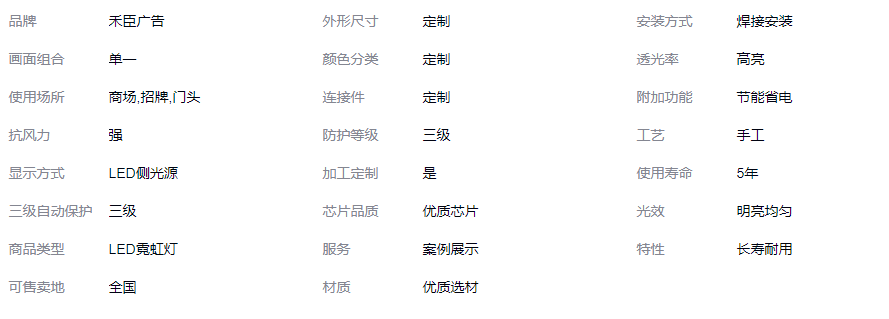 禾臣广告手工LED霓虹灯 定制焊接安装 强抗风5年寿命