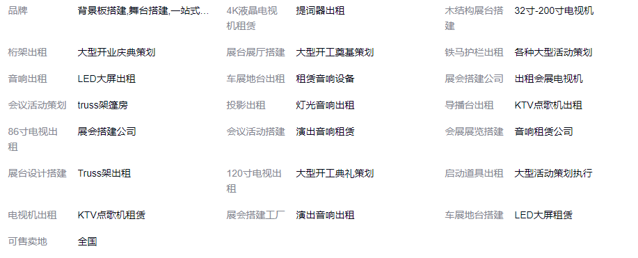 德宏现场布置、桁架、舞台、灯光、音响、地毯、LED大屏、婚礼布置、策划舞台搭建、灯光音响、背景板、桁架、LED屏出活动主营:背景板、签到墙、x展架、易拉宝、拉网专业灯光音响设备活动、LED大屏幕活动出活动、舞台搭建、,LED屏搭建、设备活动、演出器材活动、桁架背景墙活动出活动、高峰论坛、博览会、新品推广会发布会、开幕式活动、品牌宣传推广推介会、招商会、签约仪式、周年庆典、节日庆典、文化节、车展、酒会、年会、明星见面会、大型演唱会.赛事活动筹办录制、礼仪庆典服务、视听备活动、场地布置、背景装饰搭建、背景墙制作、舞美灯光设计、灯光音响工程搭建安装调试、灯光音响设备技术支持.展架、kt板、喷绘制作设计、条幅海报、舞台冷。气舞人、充气拱门、气球编织、卡通人物制作、充气模型等(活动服务):舞台搭建、背景板搭建、签到留影区布置、员工墙、桁架、铝架、帐篷、光束灯、LED帕灯、LED面光灯、追光灯、线阵音响、双十五音响、单十五音响、贵宾椅、折叠椅、长条桌、圆形洽谈桌、儿童桌椅、LED显示屏、充气拱门、开业花篮 落地气球、展览地毯、剪彩用品等庆典.(活动):专业出活动启动台、启动球、推杆启动台、翅膀启动台、许愿发光树、激光领航船舵、干冰启动台、超大1.6米水晶球、钻石启动台、金莲开花、揭幕架、撒金沙启动.活动服务设备