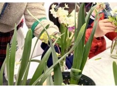 过道展区展出上海大学博物馆馆员罗阳带领居民创作的海派旗袍布艺拼贴工作坊成果,11幅亲子共创作品以海派旗袍为载体,融合上海城市记忆与摩登美学,全面展示红柿美术馆公共教育的阶段性成果。作为本次活动亮点,“崇明水仙”盆栽手工坊同步开课。正值崇明水仙花期,植物专家现场讲解水仙文化历史与养护技巧,带领参与者开展插花创作。