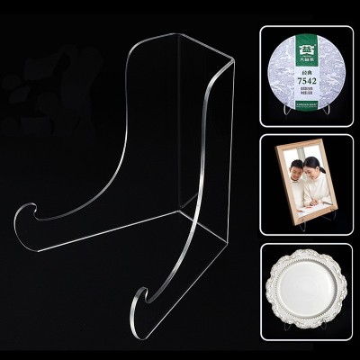 亚克力装饰盘圆盘子支架博物馆古董铜镜碟子托架相框茶饼展示架透