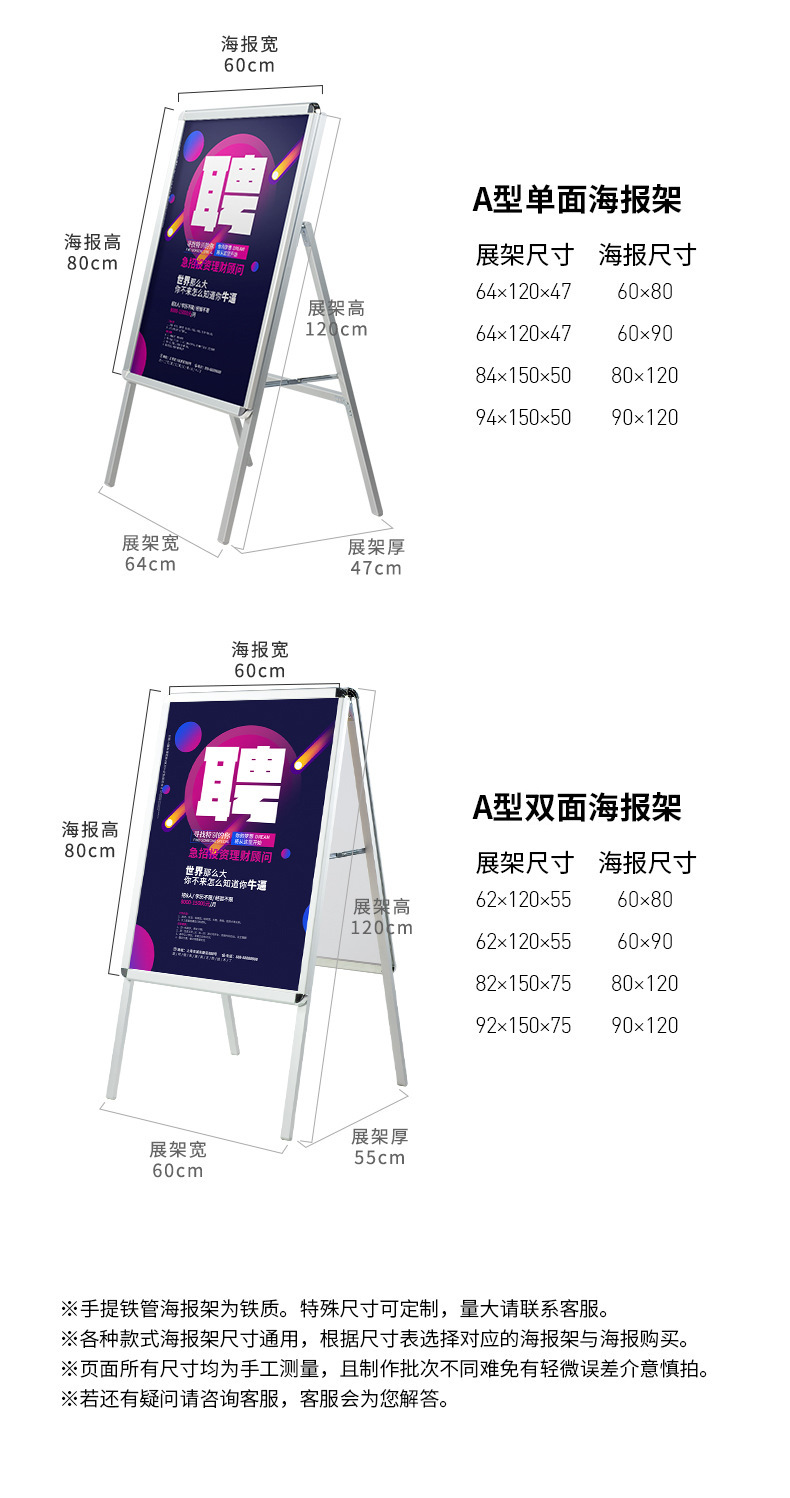 5.海报架塑封包装拆封后,不予退换!雪弗板属于按照具体尺寸切割定制类产品 一经售出 不予退换!