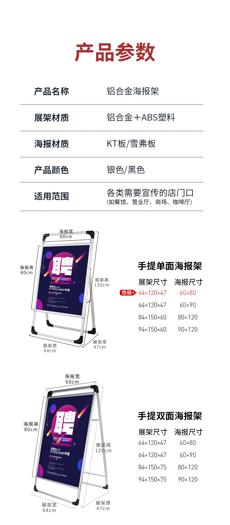 铝合金海报架户外手提立式双面海报架子落地式指示立牌广告展示架