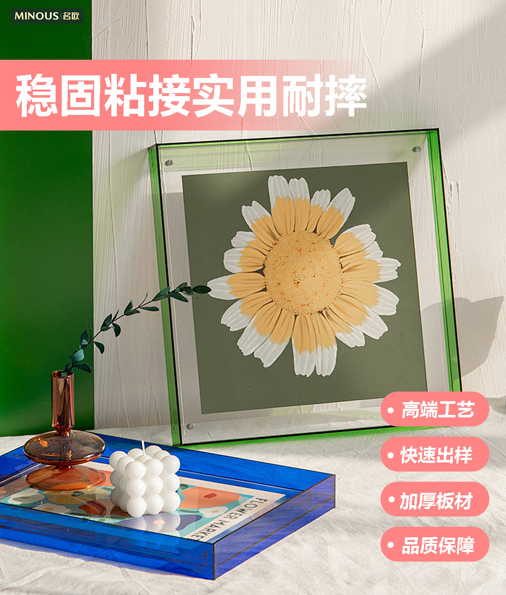 亚克力画框挂墙式摆台悬浮双面创意轻奢裱框半透彩色亚克 力相框